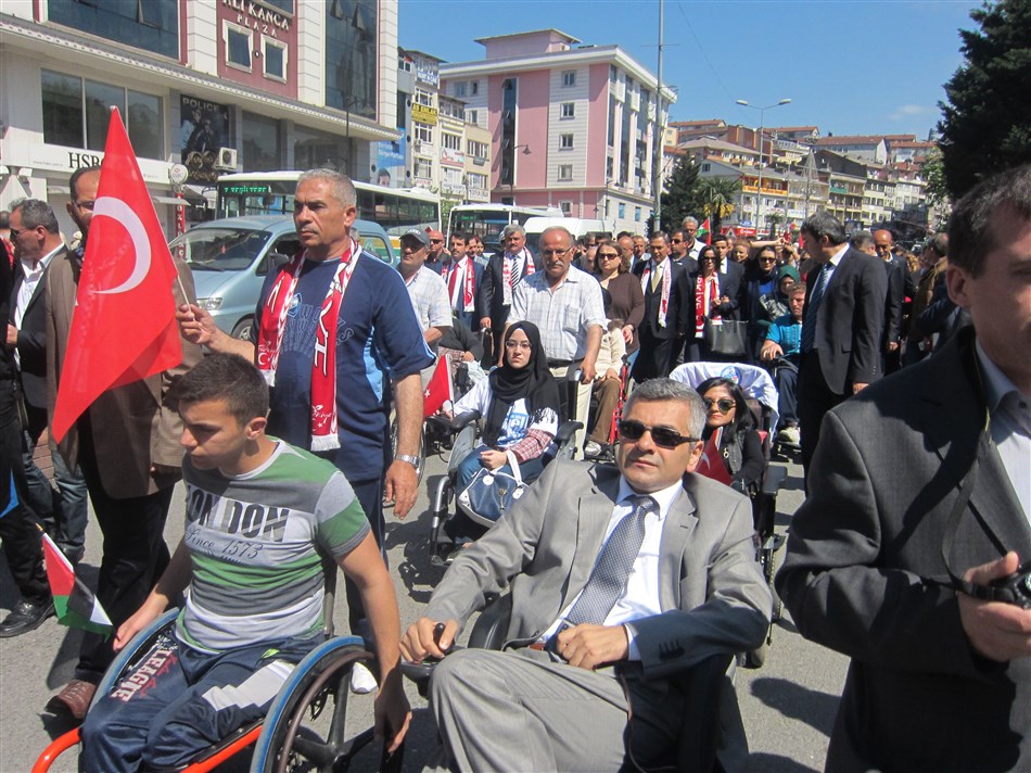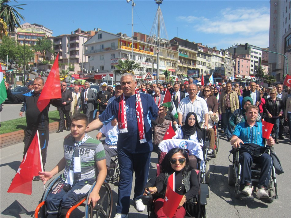 Yürüyüşe katılan İlçe Kaymakamı İbrahim Çay, Ereğli Belediye Başkanı Hüseyin Uysal, BEÜ Ereği Eğitim Fakültesi Dekanı Ali Azar, AK Parti İlçe Başkanı Fatih Çakır, CHP İlçe Başkanı Hayrettin Kartal, Ereğli Belediyesi başkan yardımcıları, Karadeniz Ereğli Fiziksel Engeller Derneği Başkanı İsmail şentürk, siyasi partilerin bazı milletvekili adayları, Filistin Engelli Milli Voleybol Takımı, korteji takip eden vatandaşları selamladı.