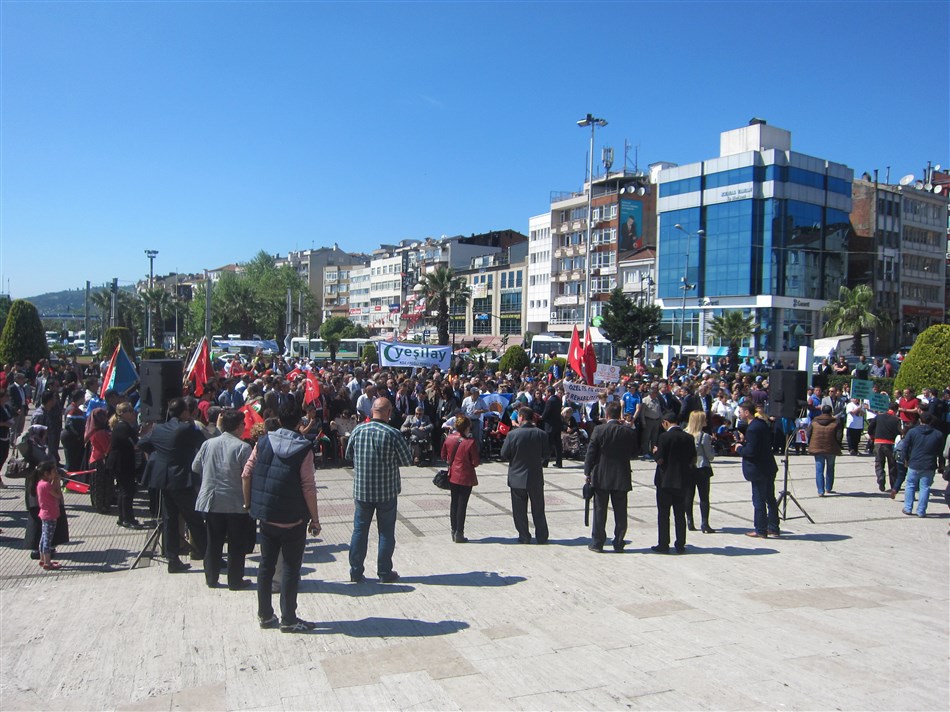 “Yıl 2015. Ereğli Belediyesi, kurulalı 135 yıl olmuş. Bu kadar yılın üstüne, Ereğli’de, ilk defa bir Engelli Koordinasyon Merkezi kurularak ilk defa Engelliler Şenliği düzenleyen Belediye Başkanımız Sayın Dr. Hüseyin Uysal’a güçlü bir alkış rica ediyorum. Bir alkışta, derneğimizin yönetiminde olan Belediye’de Başkan Yardımcısı yapan ve engelliler adına kendisini şans olarak gördüğümüz Nazım Erdoğan’a rica ediyorum. İlçemizde yaşan engellilerin birçok sorunu var ancak bu güzel ortamda bu sorunlara değinmeyeceğim. Sayın başkanımız onları takip ediyor ve çözecektir.”