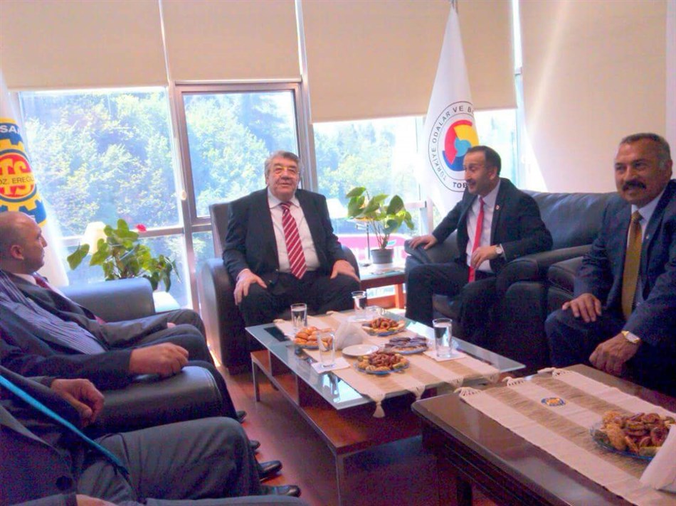 Hemen sonrasında TSO ya ziyarete giden adaylar burada da Ereğli'nin mevcut problemleri ve çözüm yolları üzerine görüş alış verişinde bulundular.