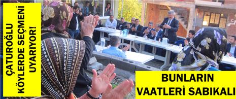 Köylerde halkla buluşan Faruk Çaturoğlu, seçmeni uyardı; ’99 yılına kadar SSK’yı batıran, ülkeyi 2002 yılında işçiye, emekliye, memura maaş veremeyecek durumda bırakıp hükümetten kaçanların vaatlerine inanmayın. Bunların vaatleri sabıkalı. 8 Hazirandan sonra bu Millete hizmeti yine AK Parti yapacak’ dedi.