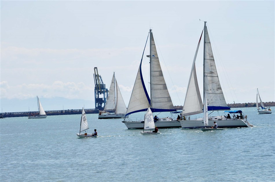Sabah saatlerinde son hazırlıklarını tamamlayan 15 sporcu; yelkenli yat, yelkenli ve rüzgar sörfleri ile kulüp önünden denize açılarak Atakürk Bulvarı sahil şeridi boyunca ilerledi.