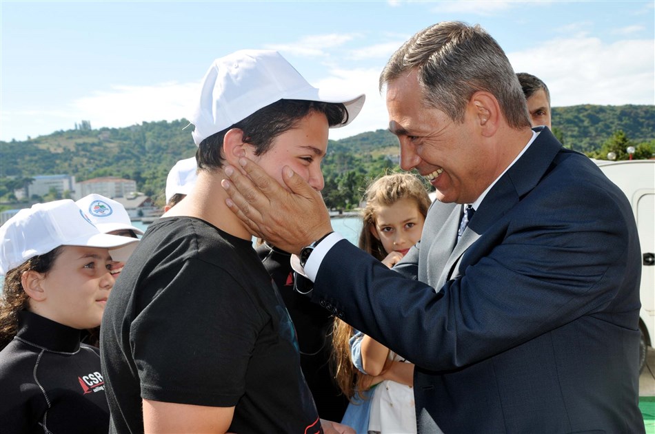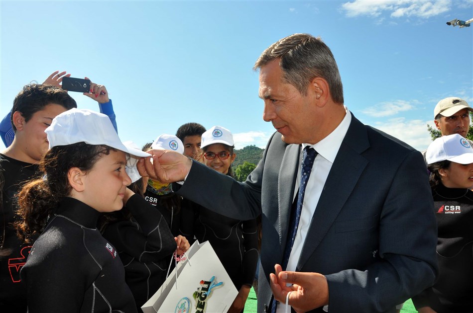 Belediye Başkanı Hüseyin Uysal, yelken gösterilerin ardından sporcuların yanına giderek günün anısına hediyeler taktim etti.