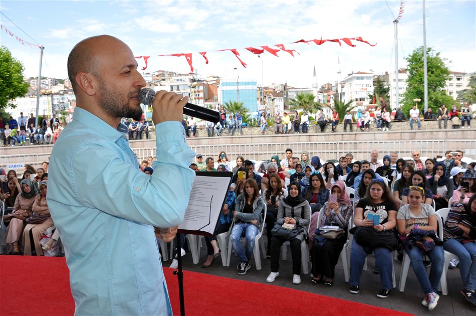 İmza ve söyleşi programına katılan Karadeniz Ereğli Belediye Başkanı Hüseyin Uysal ise bir süre şiir dinledi ve andından da sanatçı Kahraman Tazeoğlu’na teşekkür ederek çeşitli hediyeler verdi.