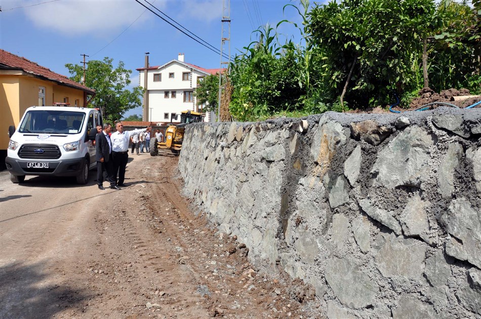Başkan Uysal, Korubaşı Mahallesi’nde bir süre önce başlayan ve tamamlanan yol genişletme ile söz konusu güzergâhta devam eden TOKİ mevkiine bağlantı yolu taş duvar çalışmasını yerinde inceledi.