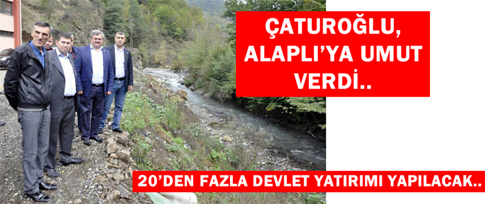 Alaplı’da kalkınmayı ilk etapta 4 yıllık fakülte kazandırarak sağlayacaklarını kaydeden Çaturoğlu, "Alaplı Belediyesi ile Merkezi Hükümetin koordineli çalışmasına katkıda bulunarak, belediyenin uygun göreceği araziye Kültür Merkezi, Spor Salonu, kirada bulunan Sosyal Güvenlik Kurumuna SGK binası, Kolluk Kuvvetlerinin kullanabileceği daha modern bir Emniyet Müdürlüğü binasını yapacağız. Alaplı’da ihtiyaca cevap verebilecek Yeni Hastane Binası, Gümeli'ye baraj ve alternatif yollar yapıyoruz, karayolunda Kavuk Kavla bağlantısı sorunu aşacağız, Mendirek, balıkçı barınağının temizlenmesi için gerekli tüm girişimlerde bulunacağız. Alaplı deremizin 17 km’lik mesafesine daha estetik bir görüntü vereceğiz. Alaplı girişi için Karayolları Genel Müdürlüğü ile üzerine çalışmalarını söylediğimiz projenin üzerine gideceğiz. Alaplı- Yığılca bağlantı yolu gerçekleşecek. Aynı şekilde Ormanlı bağlantı yolu da bizim kaderimiz olmayacak. Alaplı OSB, Islah OSB ile Sanayilerimizin bacalarından artık duman çıkmasını sağlayacağız. El Sanatları Enstitüsü, Halk Bankası'nın Alaplı'ya tekrar getirilmesi Kavakdere Mahallesi'nin Alaplı sınırlarına alınması yapılacak olan yeni okul binaları Gençlik Merkezi bizim olmazsa olmazlarımız olacak” ifadelerini kullandı.