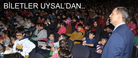Belediye Başkanı Hüseyin Uysal, çizgi film gösterimini bir süre çocuklarla birlikte izledi.