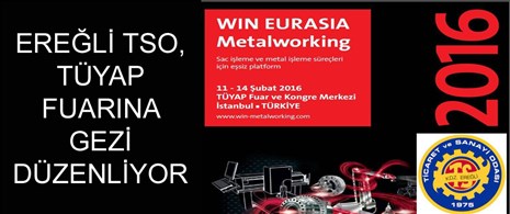 Kdz. Ereğli Ticaret ve Sanayi Odasından yapılan açıklamada fuara ilişkin şu görüşlere yer verildi: şu şekilde;“Kdz. Ereğli Ticaret ve Sanayi Odası olarak, her yıl büyük ses getiren ve binlerce misafire ev sahipliği yapan İstanbul TÜYAP Uluslararası Fuar Merkezinde düzenlenecek olan 2016 Makine İmalatı ve Metal İşlemeleri fuarına13 Şubat2016Cumartesi günü gezi tertip edilecektir. Konu ile ilgili sektörde faaliyet gösteren oda üyelerimizin en geç 09/02/2016 Salı günü saat 14:00 ‘e kadar bizzat Odamıza gelerek başvuruda bulunmaları gerekmektedir. Tüm üyelerimizin bilgisine sunulur” denildi.