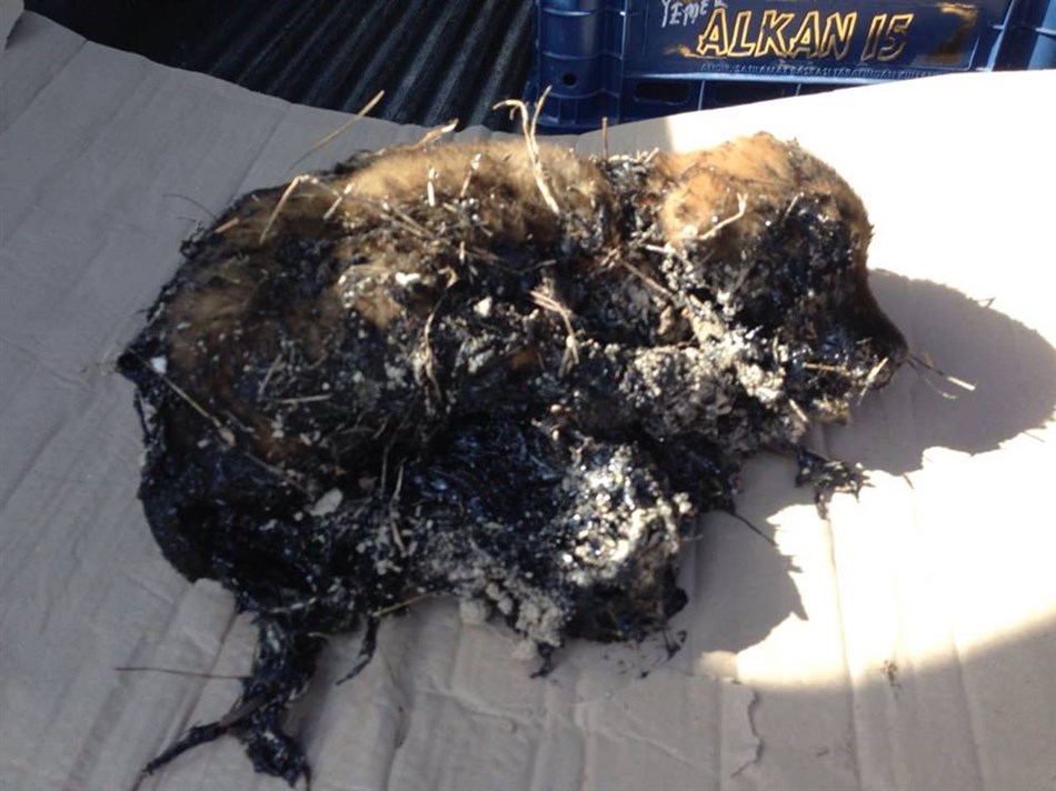 İlk gün yaptığımız müdahalede vücudunun sol tarafı yaklaşık 2 cm’lik zift katmanıyla kaplı, ön ve arka ayakları birbirine yapışık ve uzun süre aç ve susuz kalmış bir vaziyetteydi. Belediyemizin 3 veteriner hekimi ile yardımcı personellerin üstün gayretleriyle 4 saatlik bir çalışma sonucu, önce zift tabakasını çeşitli kimyasallarla söktük, ardından yıkama yaparak hareket etmesi neredeyse imkânsız olan çene ve ayakların normale dönmesi sağlandı.
