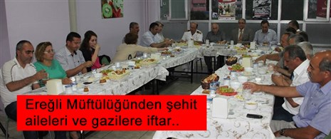 Kdz. Ereğli Müftülüğü’nce dün akşam İmam Hatip Lisesi Öğrenci yurdu Yemekhanesi’nde 300 kişilik iftar programı düzenlendi. İftara Kdz Ereğli İlçe Kaymakamı İbrahim Çay, Karadeniz Bölge ve Garnizon Komutanı Kıdemli Dnz Albay Yalçın Enç, Belediye Başkanı Hüseyin Uysal, Emniyet Müdürü Timur Özgen, Ticaret ve Sanayi Odası (TSO) Yönetim Kurulu Başkanı Yaşar Tetiker, Kdz Ereğli İlçe Müftüsü Recai Albayrak, CHP Ereğli İlçe Başkanı Hayrettin Kartal, Kızılay Ereğli Şubesi Başkanı Yusuf Oktay, Şehit aileleri, Gaziler ve aileleri, Kız Yetiştirme Yurdu öğrencileri ve vatandaşlar katıldı.