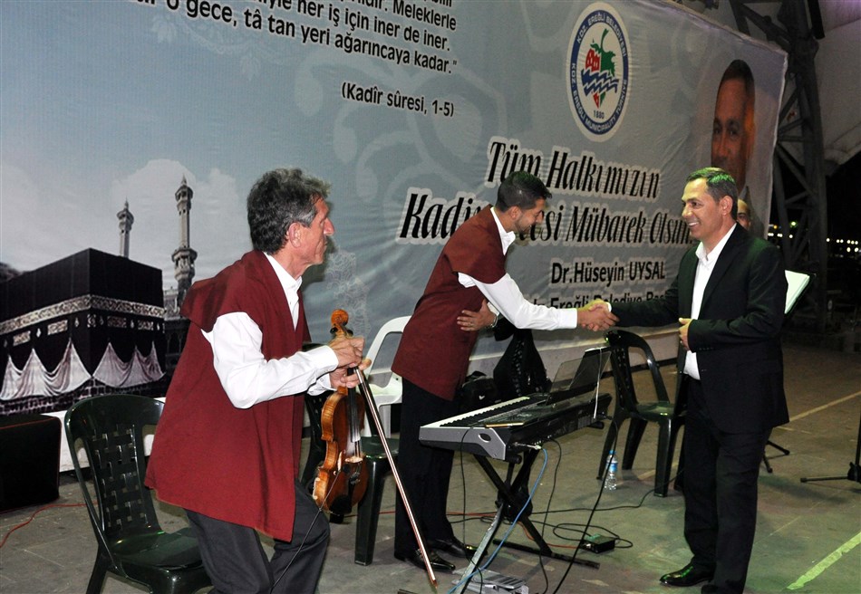 Karadeniz Ereğli Belediyesi ve Karadeniz Ereğli Müftülüğü’nün Amfi Tiyatro’da ortaklaşa gerçekleştirdiği Kadir Gecesi Programı’nda Mevlid-i Şerif ve ilahiler okundu.