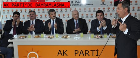 AK Parti Kdz.Ereğli İlçe Teşkilatında düzenlenen bayramlaşma programında Milletvekilleri Hüseyin Özbakır, Faruk Çaturoğlu ve Özcan Ulupınar ile İl Başkanı Zeki Tosun ve İlçe Başkanı Fatih Çakır, yaptıkları konuşmalarla partililerin bayramlarını kutladılar.