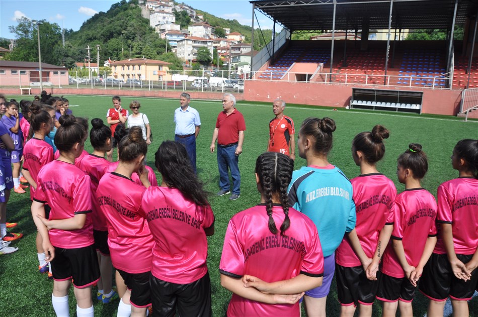 Kdz.Ereğli Belediyespor As Başkanı Hasan Pınarcık ile Bayan Futbol Takımı sorumlusu Tayfun Özcan, Antranör Necat Bakan önderliğinde yapılan son antrenmanı takip etti.