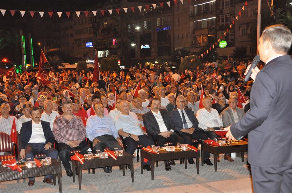 Ereğli Belediye Başkanı Hüseyin Uysal, geçmişte ki darbelerde ki yaşanan acıların ve pişmanlıkların yaşanmaması için Türk Halkının kendisini siper ettiğini söyledi. Uysal konuşmasında "Adnan Menderes'in acısı hala yüreğimizi dağlamaktadır. Aynı acıyı aynı pişmanlığı yaşamak istemeyen Türk halkı Türk milleti göğsünü tanka kurşuna siper etmiştir. Gerçekten bu milletle ne kadar övünsek azdır. Burada benim aklıma Profesör Doktor Necmettin Erbakan'ın söz geliyor. Bir milletin gücü tank top tüfek değil, bu milletin imanı inancı, vatan sevgisi, bayrak sevgisi olmasa asla bu insanları sokağa dökemezsiniz" dedi.
