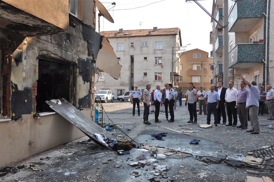 Kdz.Ereğli Belediye Başkan Yardımcıları Ayhan Atay, Hüseyin Ağlar ve Atilla Bulak, beraberinde İtfaiye Müdürü Muhammet Ali Ateş ile Zabıta Müdürü Alptekin Dursun’la birlikte patlamanın meydana geldiği evde incelemelerde bulundu.