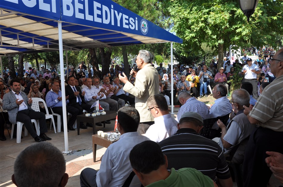 Belediye Başkanı Hüseyin Uysal, burada halka seslendi. 15 Temmuz darbe girişiminden sonra Türkiye’nin ne kadar güçlü bir ülke olduğunun ortaya çıktığını belirten Uysal; “Kurban bayramınızı kutluyorum. Başta ülkemiz olmak üzere tüm İslam alemine ve insanlığa hayırlara vesile olmasını yüce rabbimden temenni ediyorum. Bizler İsmail’i kaybetmeden İbrahim olunamayacağını, kaynaşmadan kardeş olunamayacağını bilen medeniyetten geliyoruz. Mübarek Ramazan Bayramının hemen ardından 15 Temmuz gecesi hain bir kalkışma yaşadık. Yüce rabbim inşallah böyle karanlık günler, karanlık geceler bir daha bize göstermez. Ancak o geceden sonra bizim ülkemiz sizlerin de takip ettiği gibi çok daha güçlüyüz. Ekonomide bozulmadı, çalışmalarımızda bozulmadı. Hayat aynı şekilde devam ediyor. Demek ki, ne kadar güçlü bir ülkeyiz” dedi.