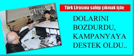 Kdz. Ereğli'de yaşayan 11 yaşındaki Cumhuriyet Ortaokulu 5. Sınıf öğrencisi Arda Yağız, Cumhurbaşkanı Recep Tayyip Erdoğan’ın çağrısı üzerine yaklaşık 4-5 yılda okul ve bayram harçlıklarından biriktirdiği 1050 dolarını TL’ye çevirdi. İlçede faaliyet gösteren döviz bürosuna gelerek dolarlarını bozduran Yağız “11 Yaşındayım ve 5. Sınıfa gidiyorum. Bayramlarda ve okul harçlıklarından biriktirdiğim bu paraları Cumhurbaşkanımız Recep Tayyip Erdoğan’ın sözü ile Türkiye ekonomisine katkısı olsun diye dolardan Türk Lirası’na çevirmeye karar verdim. 1050 dolarım vardı, onları TL’ye çevirdim” dedi.