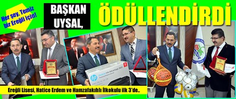 Karadeniz Ereğli Belediye Başkanı Hüseyin Uysal, e-atık toplama kampanyasında dereceye giren 3 okulu ödüllendirdi.