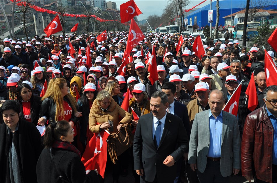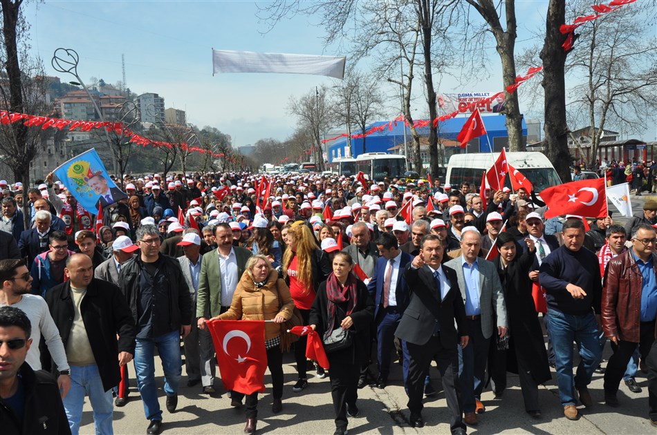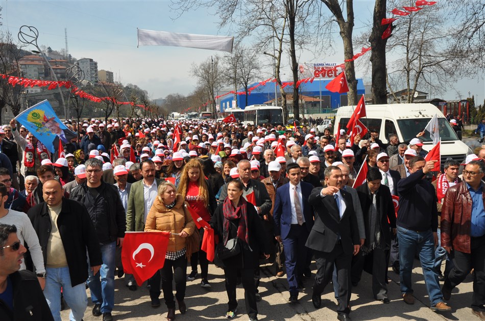 Başkan Uysal’ın önderlik ettiği konvoy, Zonguldak şehir merkezine sloganlar eşliğinde girdikten sonra miting alanına girdiler..