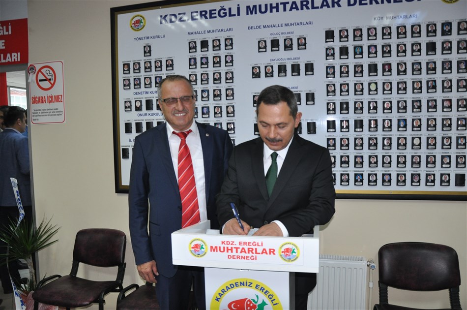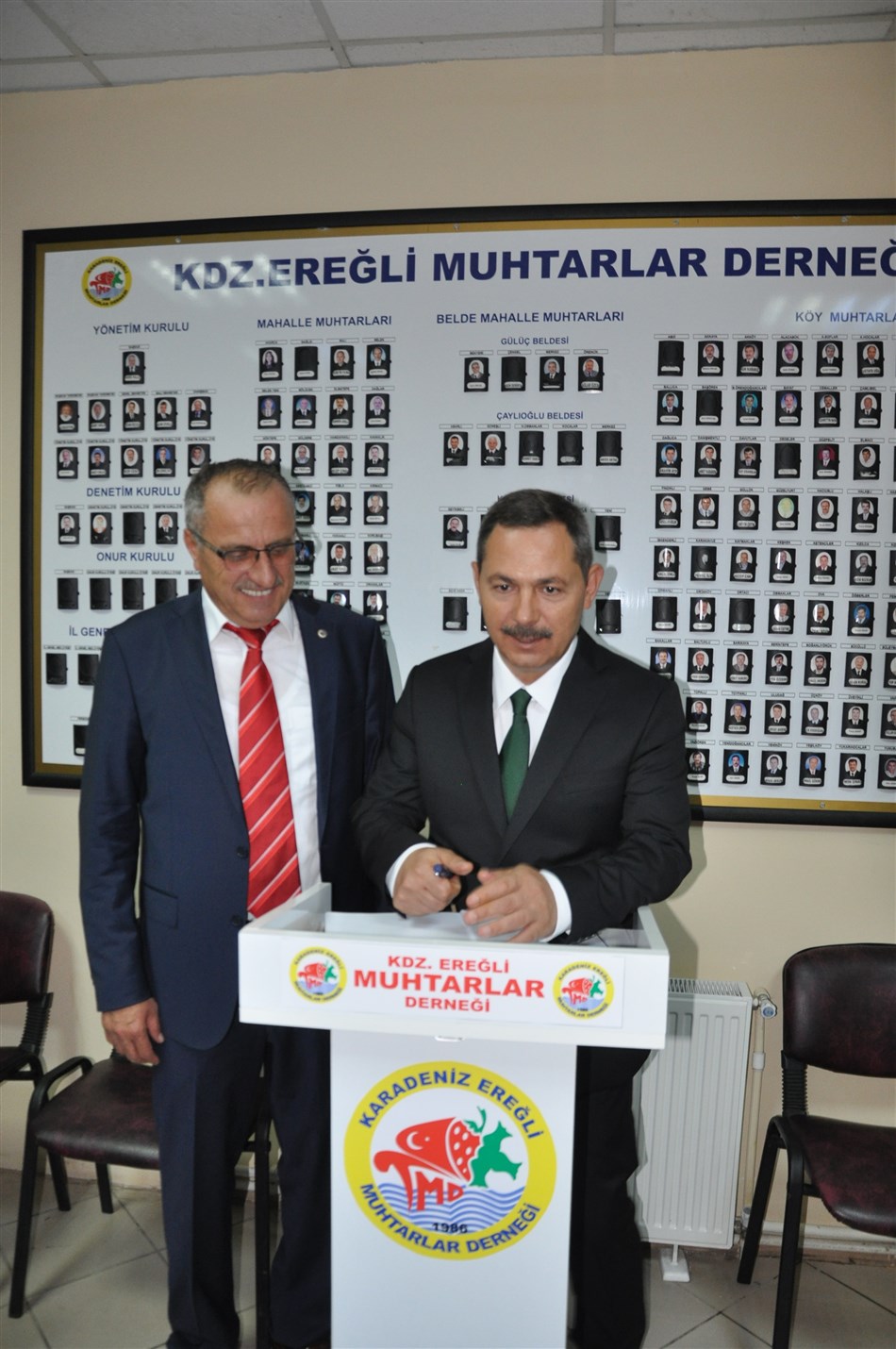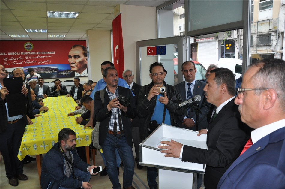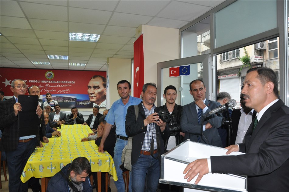 Kdz. Ereğli Belediye Başkanı Hüseyin Uysal, "Göreve geldiğimizden beri eserler koymaya başladık. Kalıcı izlerimizden biri gazilerimize yer tahsis ettik, Kızılay’a yer tahsis ettik, Muhtarlarımıza da güzel bir yer kazandırdık, söz verdik yerine getirdik. Burası bir okul. Sadece muhtarların buluştuğu yer değil burası. Burayı ziyaret edip Muhtarlarımızın derdini dinleyeceğiz. Birlik ve beraberliğin kardeşliğin artarak devam edeceğine inanıyorum.