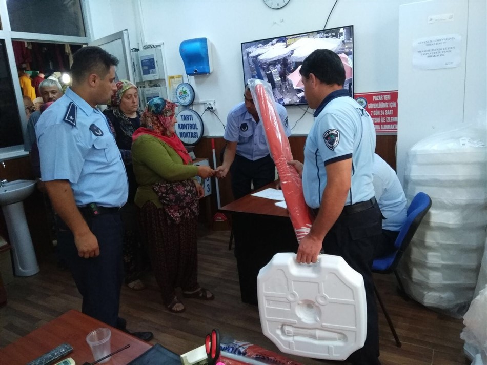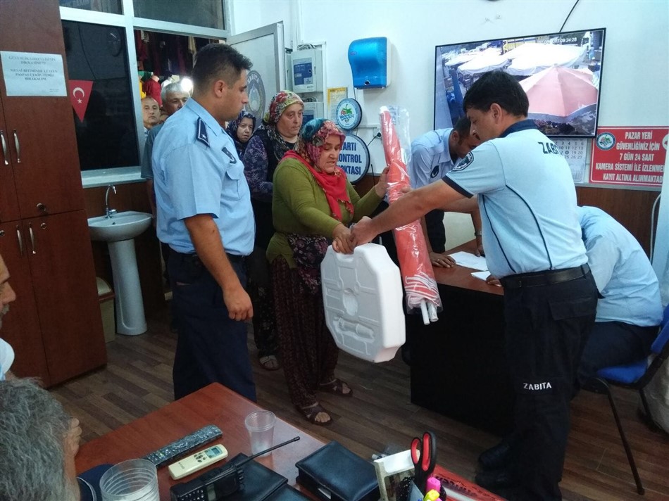 Zabıta ekipleri, hafta pazarının olduğu bugün sabah, tezgah açmak için pazara gelen ve gölgelikleri bulunmayan esnaflara 48 adet şemsiye dağıttı.