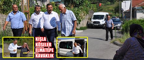 Başkan Hüseyin Uysal, Köseler Mahallesi Muhtarı Saip Erarslan, Kışla Mahalle Muhtarı Muhammet Demir, Elmatepe Mahalle Muhtarı Muammer Arslan ve Kavaklık Mahalle Muhtarı Nazif Kaplan ile birlikte mahallelerde incelemelerde bulundu.