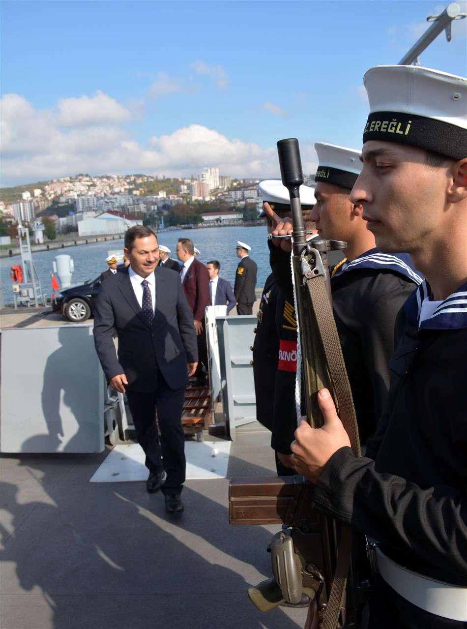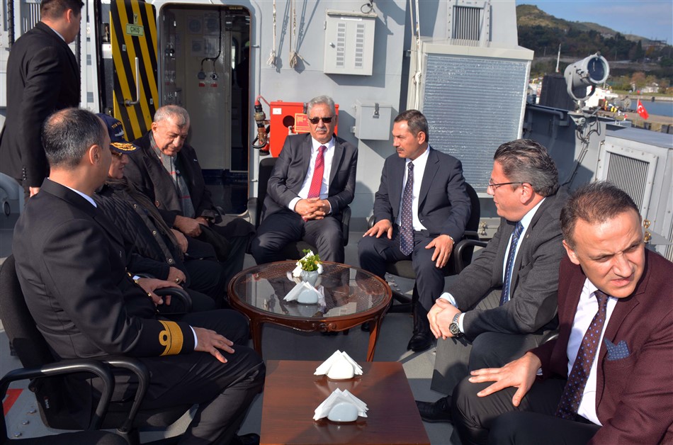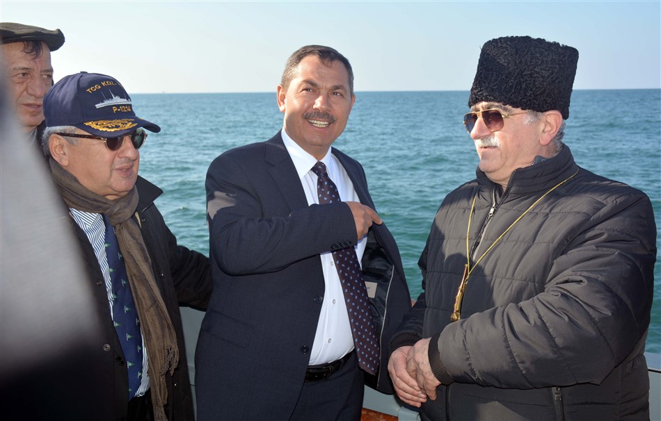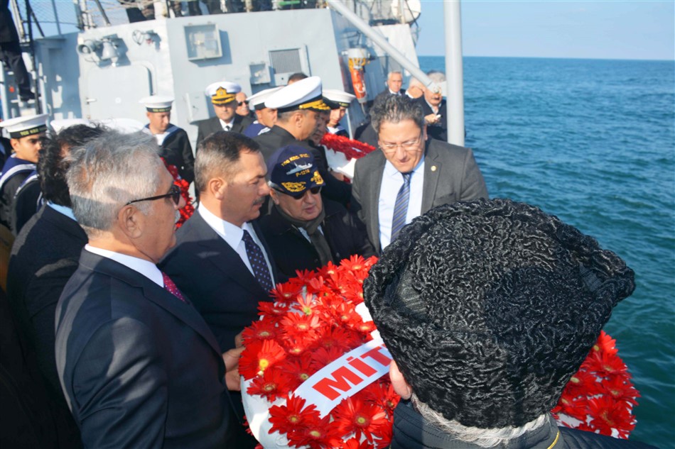 Daha sonra protokol, TCG Karadeniz Ereğli adlı karakol gemisiyle Balı bölgesi açıklarında "Bezm-i Alem", "Bahr-i Ahmer" ve "Mithat Paşa" gemilerinin batırıldığı noktada denize çelenk bıraktı.