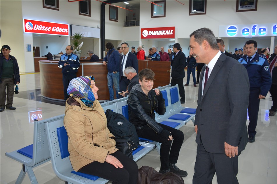 Kdz.Ereğli Belediye Başkanı Hüseyin Uysal, yeni terminalin açılışının ilk gününde beraberinde belediye başkan yardımcıları ile birlikte terminalde bulunan otobüs firmaları işletmecileri ve yolcuları ziyaret etti.