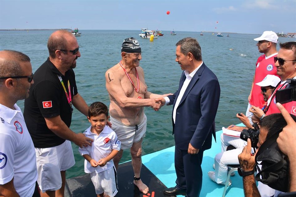 Kdz.Ereğli Belediye Başkanı Hüseyin Uysal’ın bitiş noktasında karşıladığı Bakan Esat Kıratlıoğlu, gençlere ve herkese yüzmeyi tavsiye ederek; “Genç yaşımdan itibaren yüzüyorum ama insan 90 yaşına gelince ayrı bir heyecanlanıyor. Bütün spor dalları güzel ama en güzel spor dalı yüzme. Sağlıklı bir hayat için gençlerimiz ve halkımız mutlaka yüzsünler. Bugün, Ereğli insanı kadar, parkuruda güzel onu gördük” dedi.