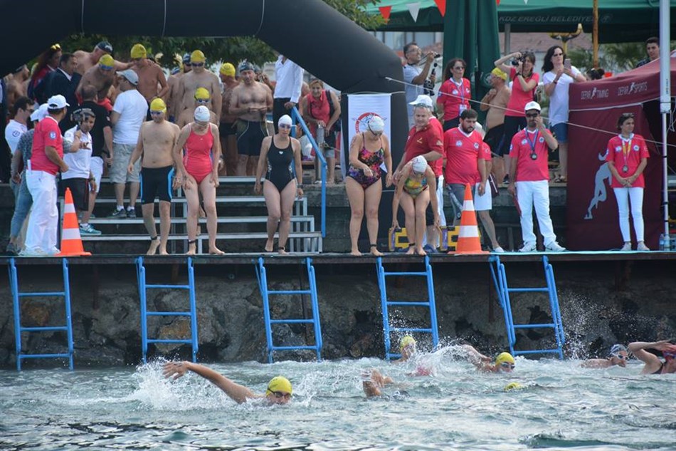 Kdz.Ereğli Belediyesi tarafından bu yıl ilki gerçekleştirilen Spor Organizasyonları şöleni kapsamında Uluslar arası Açık Su Yüzme yarışması düzenlendi.