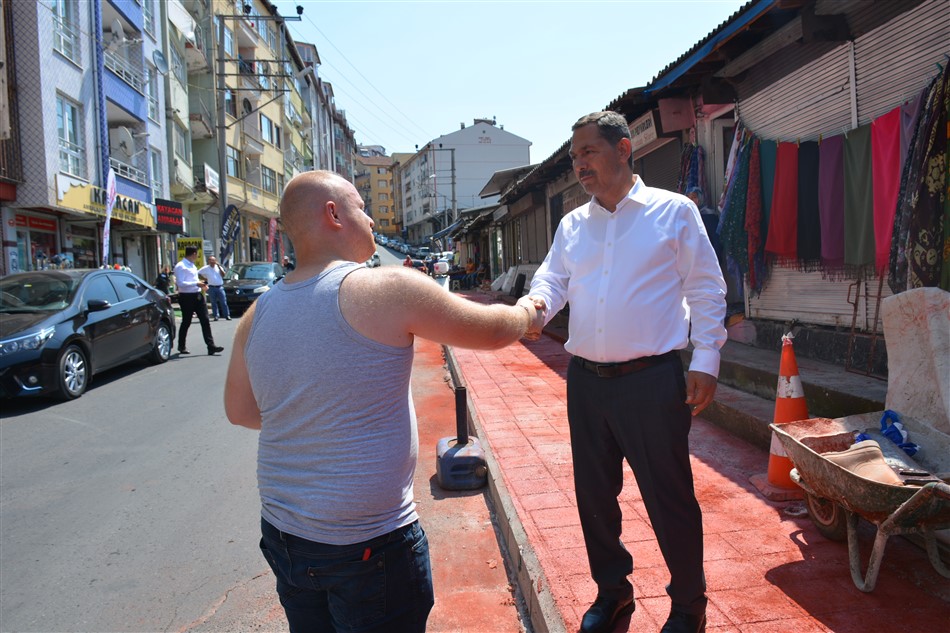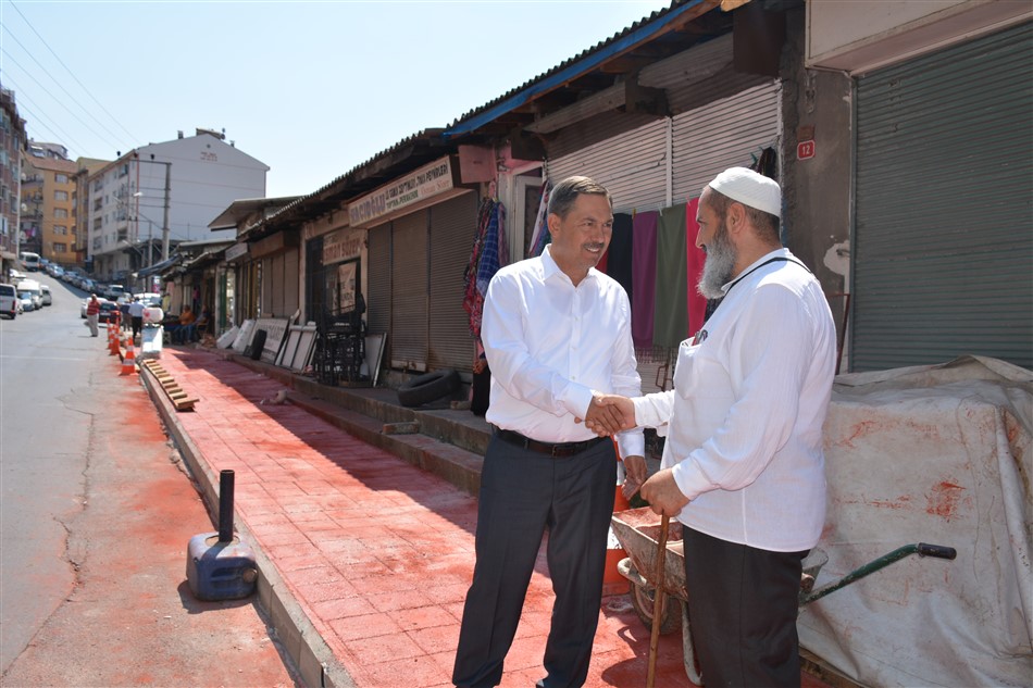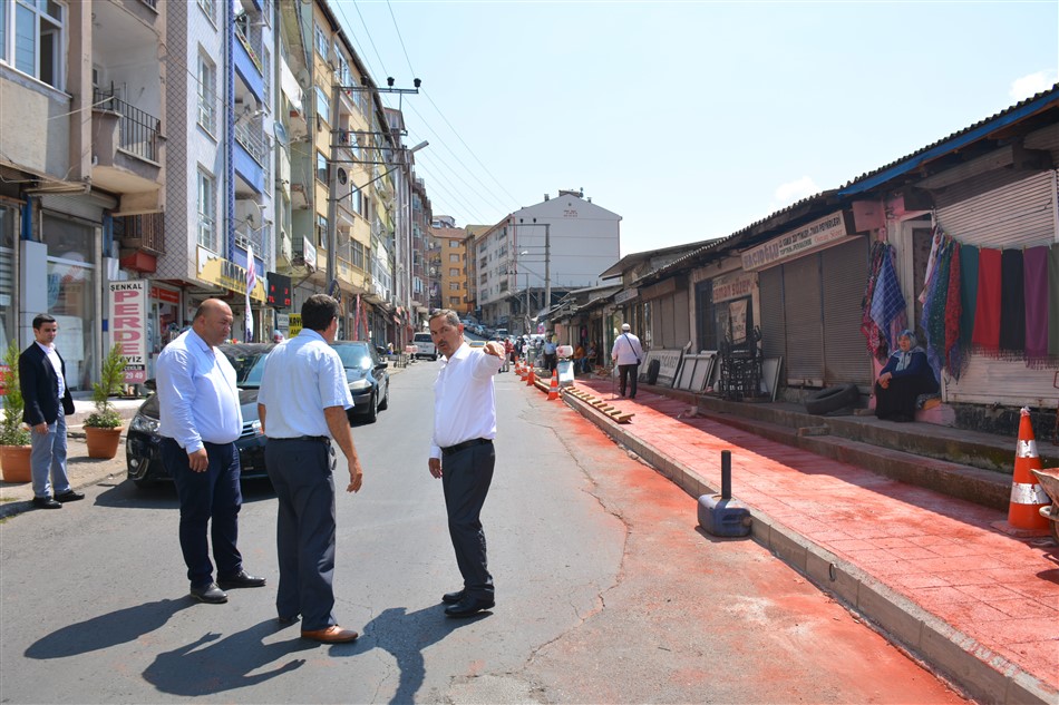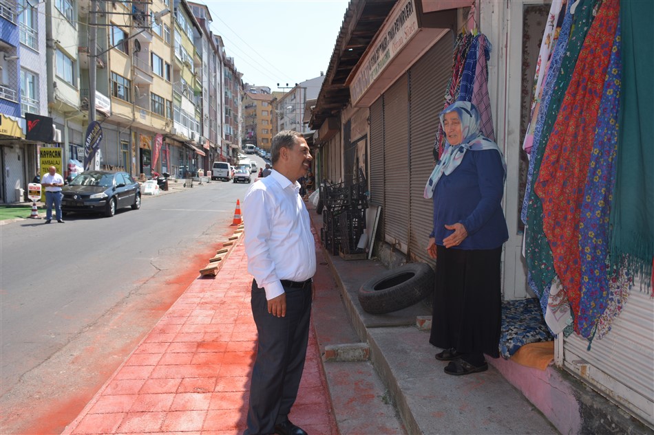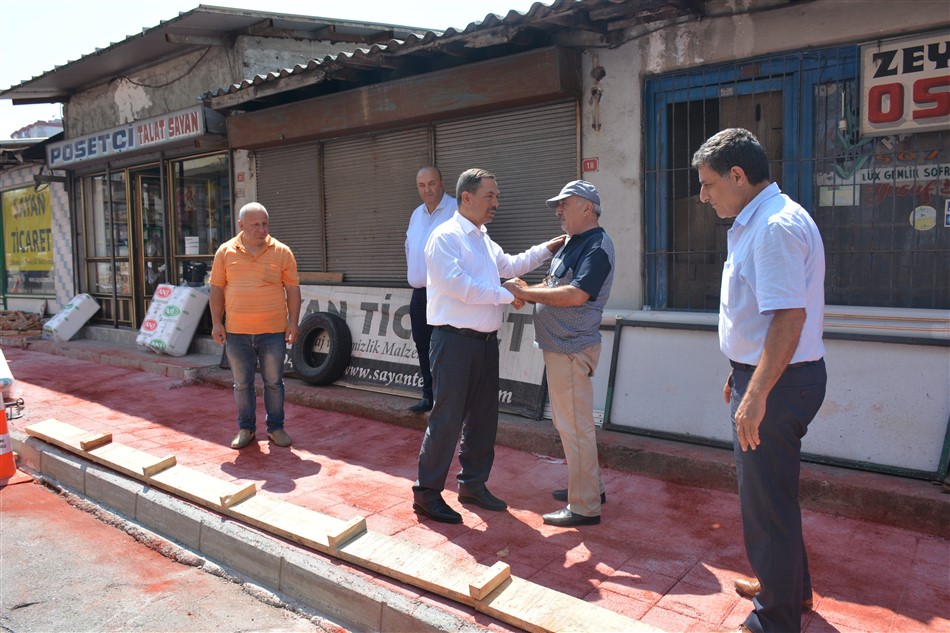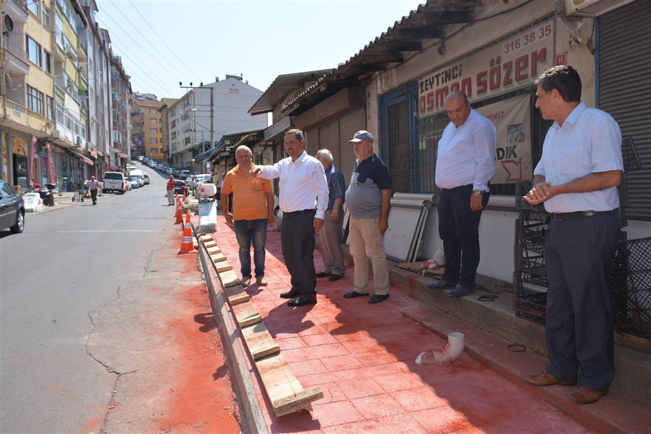 Başkan Uysal, ayrıca Şehit Rıdvan caddesinde sürdürülen yaya kaldırımı ve ışıklandırma çalışmalarını da yerinde takip etti.
