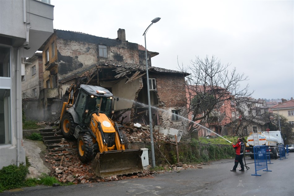 Zabıta Müdürlüğü ve İtfaiye Müdürlüğü tarafından alınan güvenlik önlemleri altında yapılan yıkım çalışmaları, Kavaklık Mahallesi Devrek Yolu Caddesi 64 numarada bulunan binanın yıkım işlemiyle devam edecek.