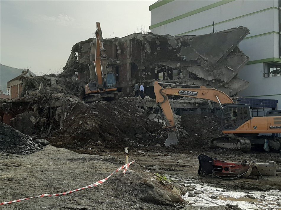 Orhanlar Mahallesi Dikili Caddesi 10 ve 12 numaralı adresteki metruk binanın yıkımının ardından Kepez yolu üzerindeki 5 katlı binada ve Orhanlar Mahallesi Huzur Sokaktaki binada yıkım işlemi başladı.