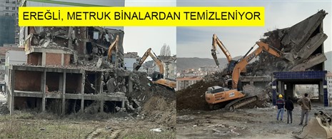 Zonguldak Valiliği İl Çevre ve Şehircilik Müdürlüğü’nün olurlarıyla Kdz. Ereğli’de tespit edilen metruk binaların yıkım işlemleri sürüyor.