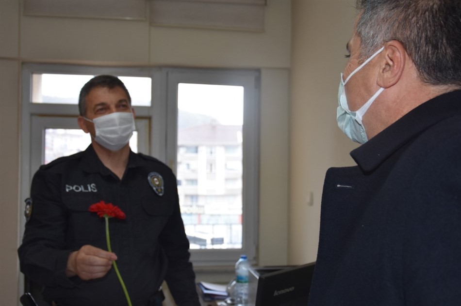 AK Parti heyeti tarafından ilk ziyaret, Polis Haftası münasebetiyle Kdz. Ereğli İlçe Emniyet Müdürlüğü’ne yapıldı. Ziyarette Emniyet Müdürlüğü binasındaki birimler gezilerek, bu birimlerde çalışan polislere karanfil takdim edilip Polis Haftaları kutlandı. Başkan Bozkurt emniyet mensuplarıyla sohbet ederek, zorlu pandemi sürecinde gösterdikleri özveriden dolayı teşekkür etti, görevlerinde başarılar diledi. Ziyarette Kdz. Ereğli İlçe Emniyet Müdürü Hakan Çelik de Başkan Bozkurt ve beraberindeki partililere eşlik ederek, birimler hakkında bilgi verdi. Emniyette çalışan polisleri ziyaretin ardından AK Parti heyeti, İlçe Emniyet Müdürü Hakan Çelik’i makamında ziyaret etti. Ziyarette Bozkurt, bu süreçte yürüttükleri çalışmalardan dolayı Çelik’i tebrik ederek, görevlerinde başarılar diledi.