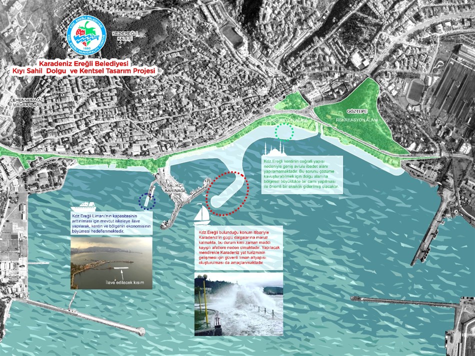 Projemizdeki en önemli noktalardan birisi de şudur; Kdz. Ereğli’nin bulunduğu konum itibari ile sahil, Karadeniz’in güçlü rüzgarlarına maruz kalmakta, bu durum kimi zaman maddi kayıplı afetlere neden olmaktadır. Yapılacak ilave mendirekle Karadeniz yat turizminin gelişmesi ve balıkçı barınaklarını koruması hedefleniyor. Bu, sahilin güvenliği için hayati önem taşımaktadır.”