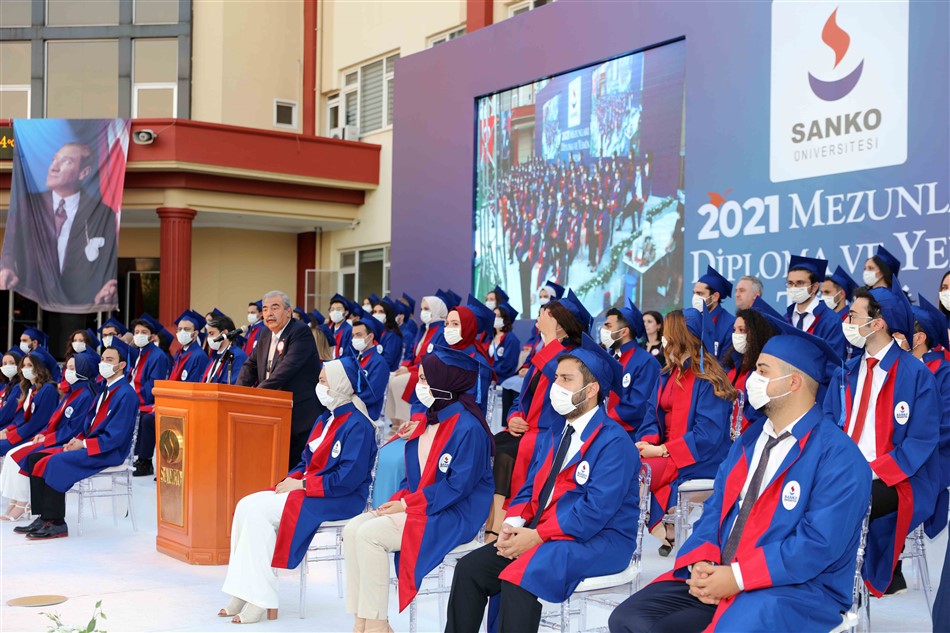SANKO Okulları bahçesinde düzenlenen törene Gaziantep Büyükşehir Belediye Başkanı Fatma Şahin, SANKO Üniversitesi Mütevelli Heyet Başkanı Abdulkadir Konukoğlu, Rektör Prof. Dr. Güner Dağlı, İl Emniyet Müdür Vekili Aşkın Söğüt, Büyükşehir Belediye Başkan Yardımcısı Dr. Mehmet Berk, Şahinbey Belediye Başkan Yardımcısı Cuma Güzel, Gaziantep İslam Bilim ve Teknoloji Üniversitesi Rektör Yardımcısı Prof. Dr. Osman Bilgin, SANKO Üniversitesi Mütevelli Heyet Üyeleri Ali Konukoğlu, Dr. İbrahim Konukoğlu, Gürkan Tural, Rektör Yardımcısı Prof. Dr. Metin Bayram, Genel Sekreter Dr. Yusuf Ziya Yıldırım, Tıp Fakültesi Dekanı Prof. Dr. Salih Murat Akkın, Sağlık Bilimleri Fakültesi Dekanı Prof. Dr. Türkan Pasinlioğlu, Tıp Fakültesi Dekan Yardımcısı ve Lisansüstü Eğitim Enstitüsü Müdürü Prof. Dr. Ayşen Bayram, Sağlık Hizmetleri Meslek Yüksekokulu Müdür Vekili Prof. Dr. Ayhan Özkur, SANKO Üniversitesi Hastanesi Genel Müdürü Dr. Sermet Kileci, SANKO Holding şirket yöneticileri, öğretim üyeleri, öğrenciler ve aileleri katıldı