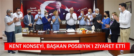Kent Konseyi yeni yönetimi ziyarette bir de sürpriz yaparak Başkan Halil Posbıyık’ın doğum gününü ‘Efsane Belediye Başkanı, Doğum Günün Kutlu Olsun’ yazılı pasta ile kutladı. Başkan Posbıyık, doğum günü pastasını eşi Neriman Posbıyık ile birlikte kesti.