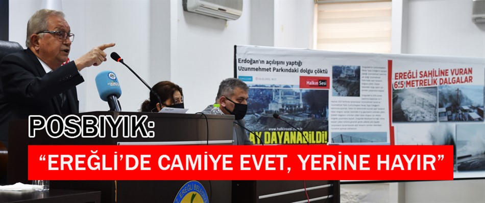 Kdz. Ereğli halkının büyük çoğunluğunun sahile cami yapılmasını istemediğini anlatan Başkan Posbıyık, “Kdz. Ereğli’de camiye evet, yerine hayır” dedi.