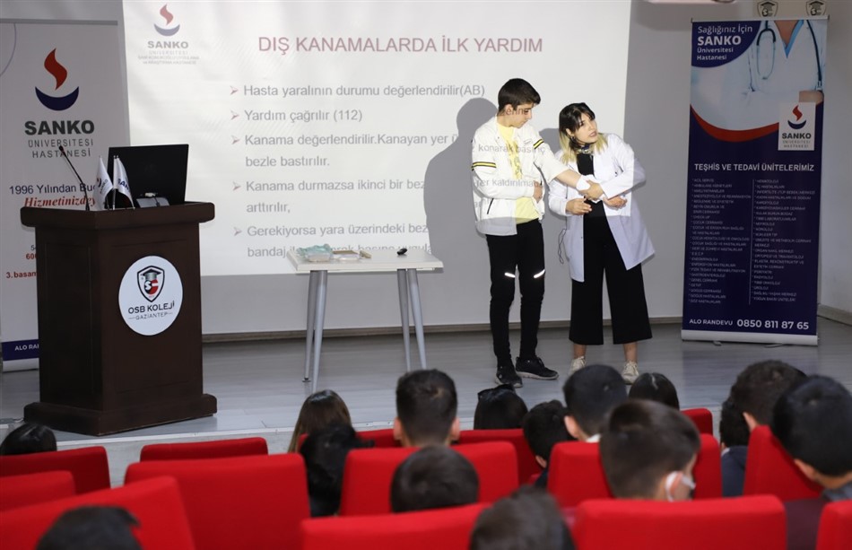 Gaziantep OSB Mesleki ve Teknik Anadolu Lisesi yöneticilerinin öğrencilerinde farkındalık oluşturarak, ilkyardıma ihtiyaç duyulduğunda bilinçli hareket etmelerini sağlamak amacıyla talep edilen eğitime SANKO Üniversitesi Hastanesi İlk Yardım Eğitim Merkezi olarak destek vermekten büyük bir mutluluk duyduklarını dile getiren Tabur, “Gençlerimizin hayatına olumlu dokunmak ve insan sağlığına katkı sağlamak adına desteklediğimiz bu sosyal projede, birlikte yapacağımız uygulamaların da büyük etkisi olacağına inanıyorum” diye konuştu.