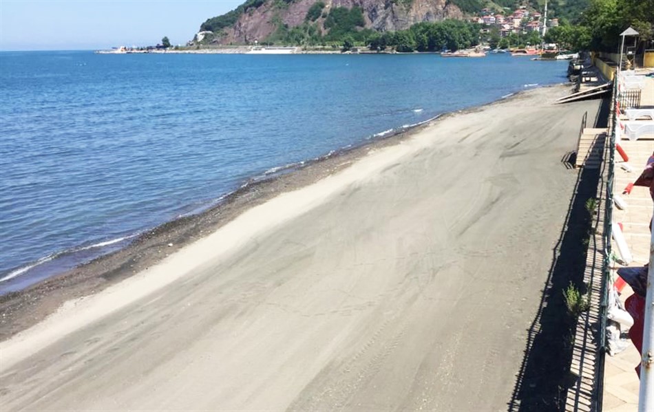Batı Karadeniz Bölgesi ve çevre illerden gelen günübirlik ziyaretçilerin çekim merkezi olan Sevgi, Barış, Dostluk Plajı’nda özel araçla kumsal temizliği yapılıyor. Bölgede nadir olarak kullanılan kumsal temizleme aracıyla taşlar temizleniyor, kumsal, çıplak ayakla yürümek isteyenler için cam kırığı gibi kesici materyallerden arındırılıyor.