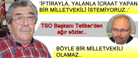 Karadeniz Ereğli Ticaret ve Sanayi Odası Başkanı Yaşar Tetiker, Milletvekili Prof. Dr. Ercan Candan’ın yerel bir haber sitesine yaptığı açıklamalara ilişkin, “Sayın Milletvekili verdiği demecinde, ‘liman konusunda TSO işi yokuşa sürüyor’ diyor. Yüzde 4 hisse istediğimi, altın hisse istediğimi söylüyor. Hâlbuki benim böyle bir hakkım yok. Asla ve asla iftira atmasın, yalan konuşmasın. Bir milletvekiline iftira ve yalan yakışmaz. Milletin nazarında küçük düşer, sokağa çıkamaz hale gelir. Eğer bir tersaneci, ‘arkadaş Yaşar Tetiker bizden yüzde 4 hisse istedi’ derse, Oda Başkanlığını bırakıyorum. Bırakmakla kalmam, Türkiye’yi de terk ederim. Ama ondan da şunu isterim. Eğer yalan söylediysen, iftira attıysan, senin de milletvekilliğini bırakman lazım. Bu da benim hakkım. Böyle bir milletvekili olmaz. İftirayla, yalanla icraat yapan bir milletvekilini asla kabul etmiyoruz.” dedi.