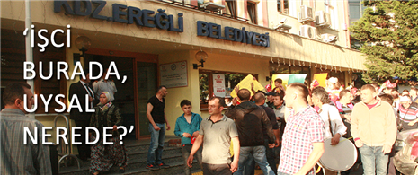 Erdemir'e bağlı Liman işletmesinde iş bırakan taşeron çalışanları 2 gündür sürdürdükleri eylem sonrası Türk Metal Sendikası ve Ereğli Belediyesi önüne sloganlarla yürüyerek, 'Seçimden önce verilen sözler tutulsun' dediler..