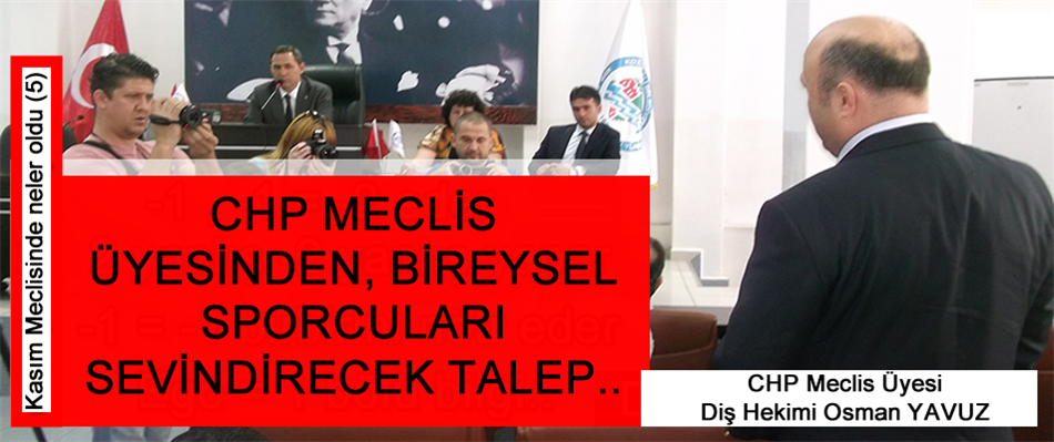 Ereğli Belediye Meclisi Kasım Ayı toplantısında, Belediyespor’a nakdi yardım yapılmasına ilişkin gündem maddesi görüşülürken, CHP Meclis Üyesi Diş Hekimi Osman Yavuz’dan bireysel sporcuları sevindirecek bir talep geldi.