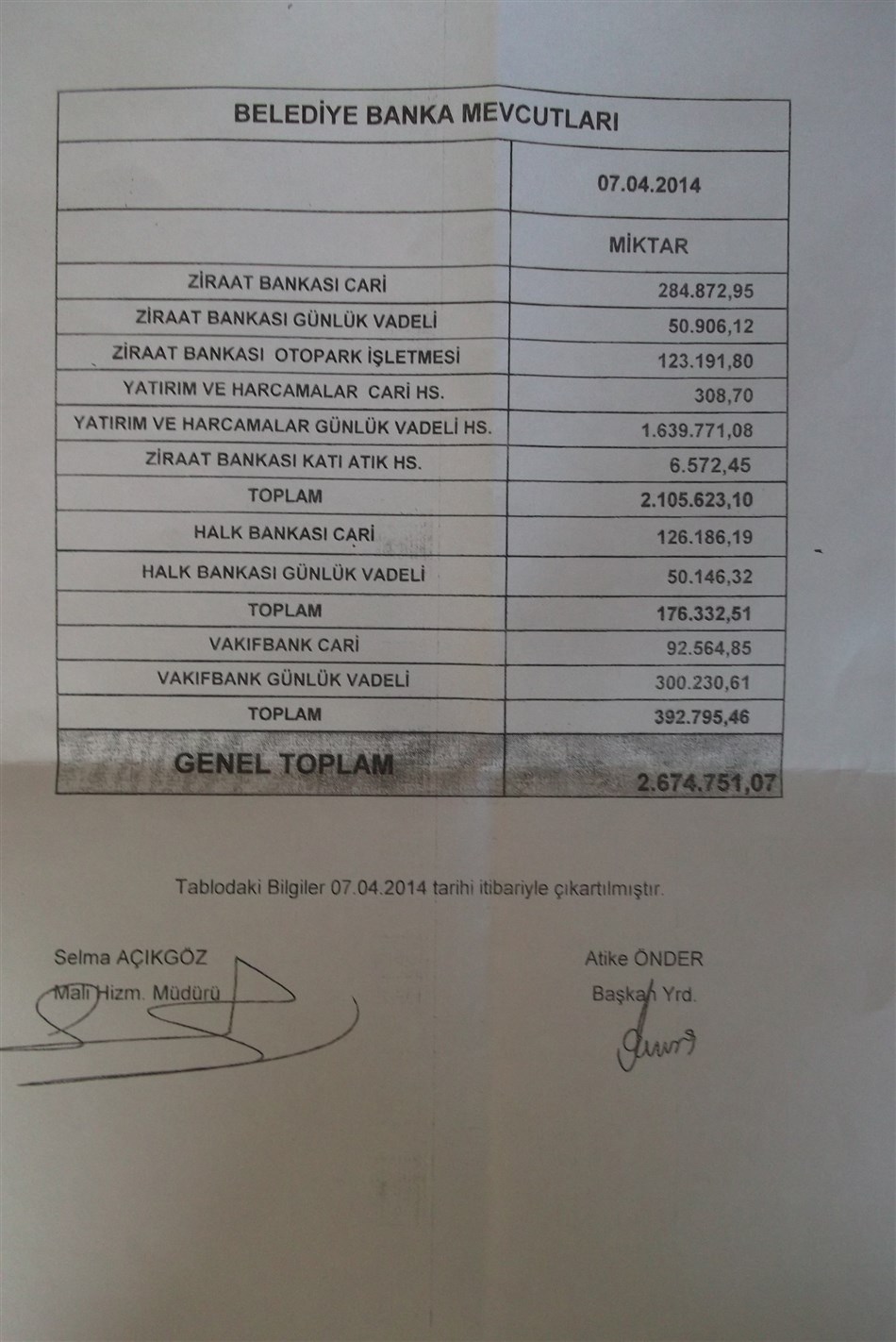 Posbıyık döneminin başkan yardımcıları olan Özkan Özyağcı ve Nezih Anıl, belediyeyi devrettikleri tarihte banka hesaplarını gösteren belgeyi basına dağıttılar.