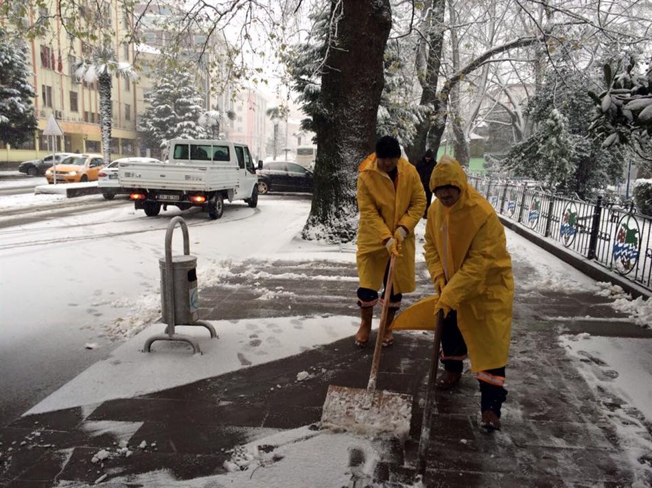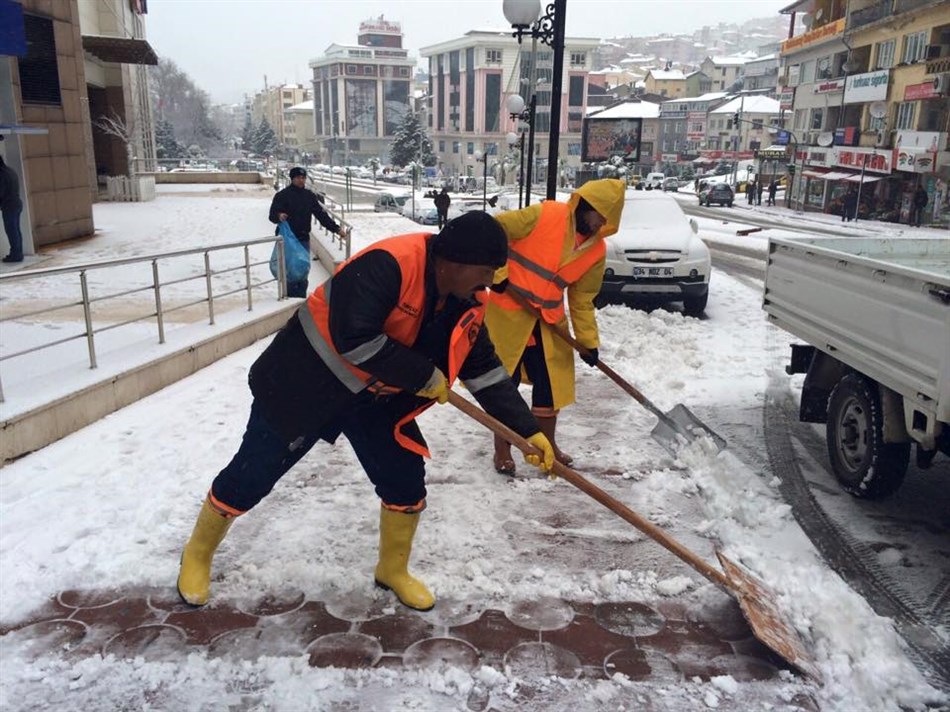 Belediye Temizlik İşleri Müdürlüğü çalışanları ise, özellikle şehir merkezindeki kamu binaları önünde ve halkın yürüyüş alanlarında kar temizleme çalışmalarını sürdürüyor.