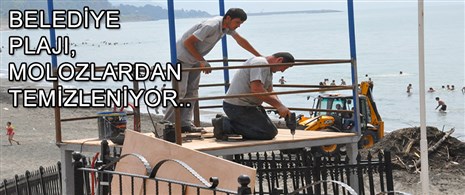 Geçtiğimiz gün yaşanan sel felaketi sonrası kumsala yığılan bazı atıklar, Fen İşleri Müdürlüğü araçları tarafından temizlenirken, tesisler 14 Haziran 2014 Cumartesi günü halkın hizmetine açılıyor.