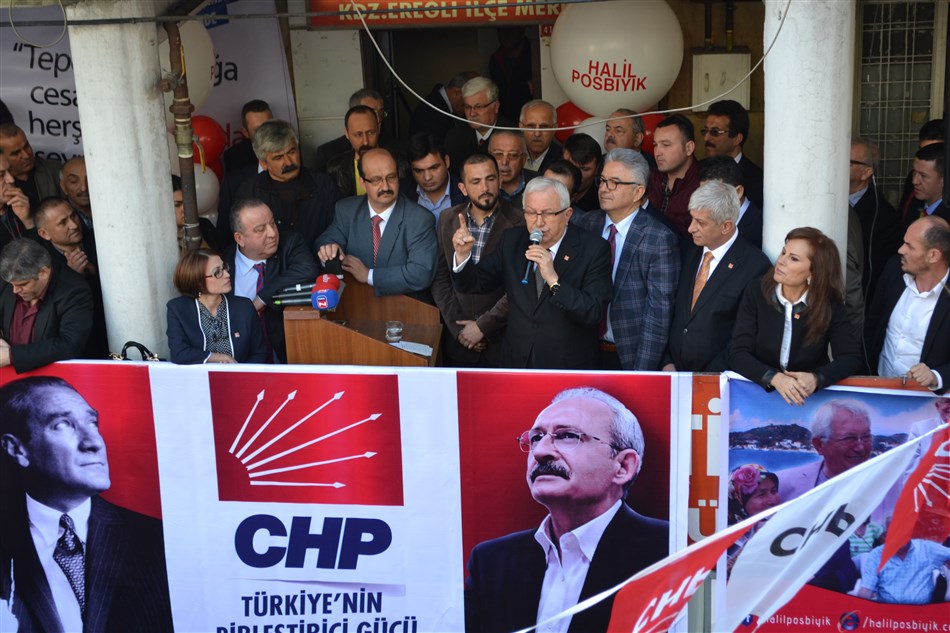 Açılış konuşmasını yapan CHP Ereğli İlçe Başkanı Hayrettin Kartal, Posbıyık’ın 20 Yıldır Ereğli Belediye Başkanlığı yaptığını ve CHP’ye katıldığından bu yana Ciddi katkılar sağladığını söyledi.