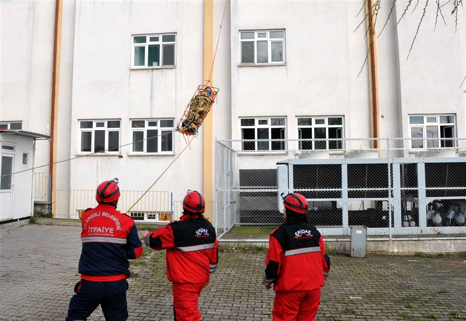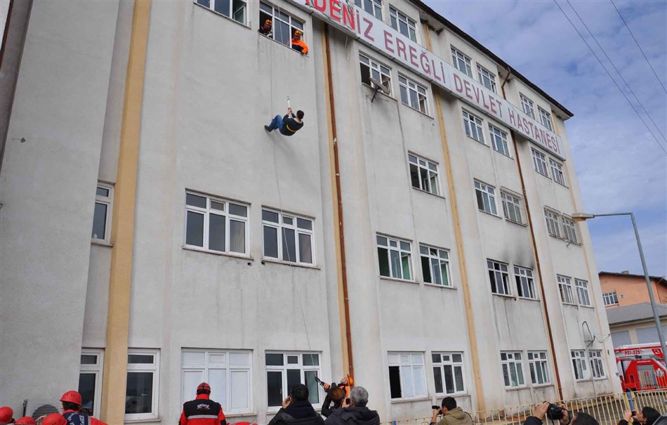 01-07 Mart tarihleri arası kutlanan Deprem Haftası dolayısıyla bu yıl Kdz. Ereğli Belediyesi İtfaiye Müdürlüğü, Zonguldak İl Afet ve Acil Durum Müdürlüğü (AFAD), Ulusal Medikal Kurtarma Ekibi (UMKE), Ereğli İtfaiyecileri Doğa Sporları Arama ve Kurtarma Derneği’nin (ERİDAK) katılımları Kdz. Ereğli Eski Devlet Hastanesi Binası’nda gerçekleştirilen Deprem Tatbikatı gerçeğini aratmadı.