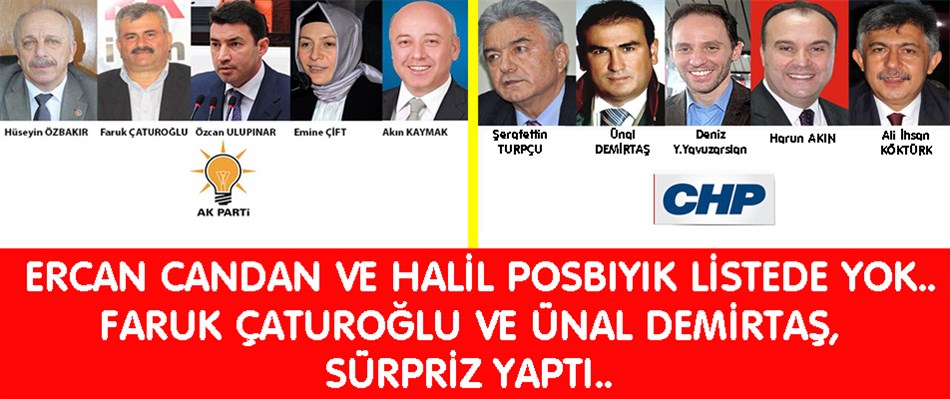 Partilerin Zonguldak Milletvekili adayları belli oldu. AK Parti'de Ercan Candan, CHP'de Halil Posbıyık aday yapılmadı. AK Partide Faruk Çaturoğlu ve CHP'de Ünal Demirtaş sürpriz yaptı. MHP'de ise ilk 2 sırada Zeki Çakan ve Yavuz Erkmen yer aldı.