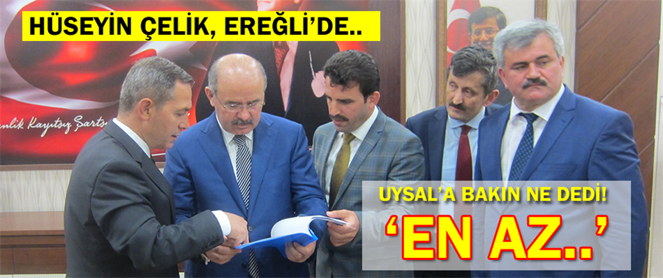 Çelik, 30 Mart seçimlerinde AK Parti çatısı altında seçimleri kazanan Belediye Başkanı Hüseyin Uysal'a, başkanlık makamında değerlendirmelerde bulunurken, "1 oönem yetmez, birinci dönemde işleri anca yerine oturtursun. En az 3 dönem durmak yok yola devam. Ereğli'nin ağırlığına yakışır hizmetler yapmak lazım. Türkiye'nin en güzel ilçelerinden birisi olması lazım burasının. Özellikle yapılaşmaya dikkat edin" dedi.